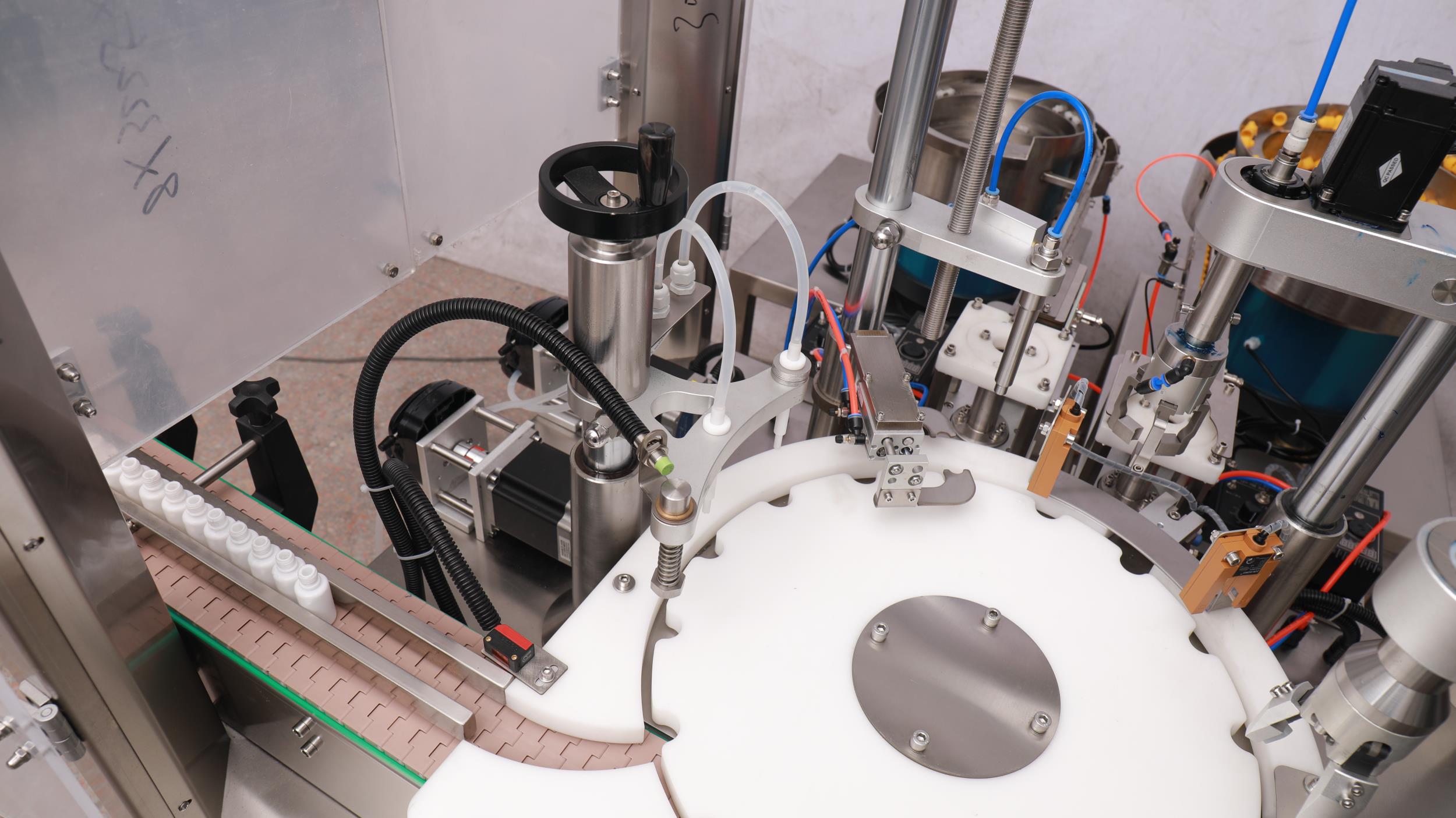 全自動灌裝旋蓋一體機(蠕動泵灌裝+擺臂式上蓋,內塞加外蓋)